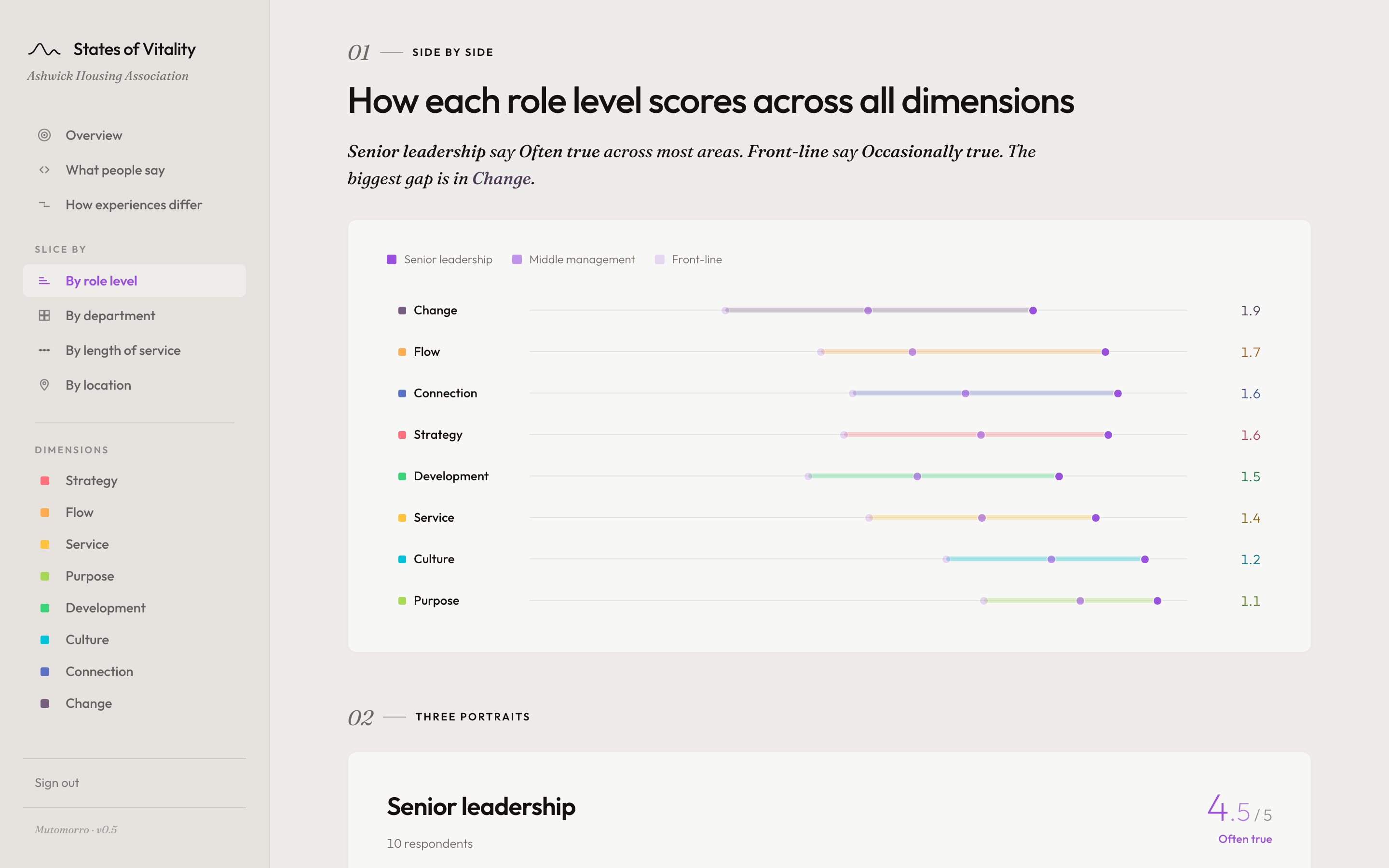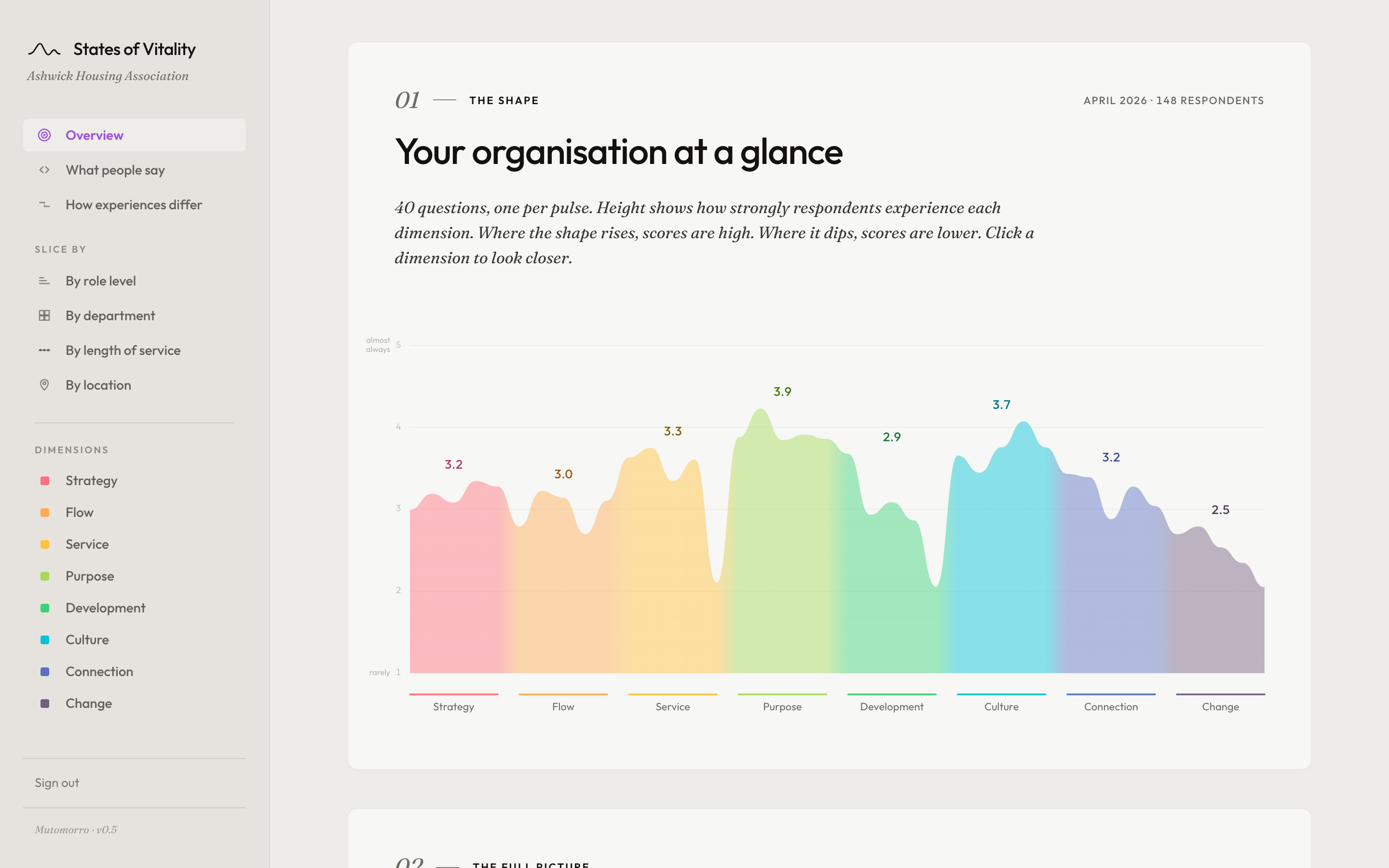 The States of Vitality assessment is for leaders who want to see beneath the surface. Who suspect that the real story of how their organisation works isn't captured in engagement scores or performance dashboards. Who want insight that connects the dots rather than adding more dots to connect.