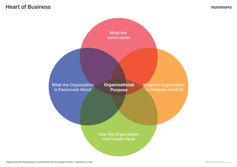 Understanding the Heart of Business Model can be helpful for organisations seeking to make a significant impact or looking to reconnect with their purpose as a central touchstone for organisational practice. It provides a broad roadmap for organisations to identify their core values, align them with their mission, and use these to create a sustainable and fulfilling workplace culture.