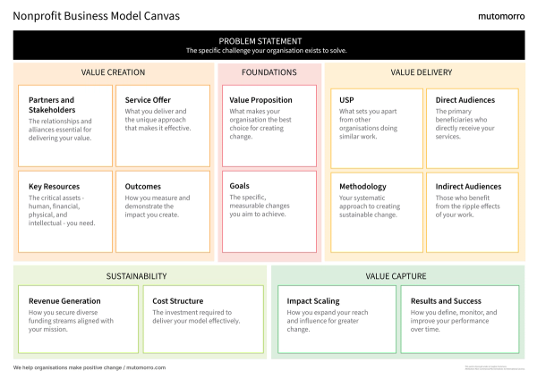 The nonprofit business model canvas offers a powerful lens for strategic thinking in our complex, resource-constrained environment. By systematically working through these six areas, organisations can build clarity about their purpose, sustainability, and path to impact.
