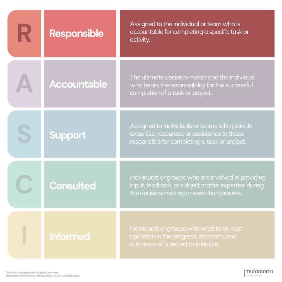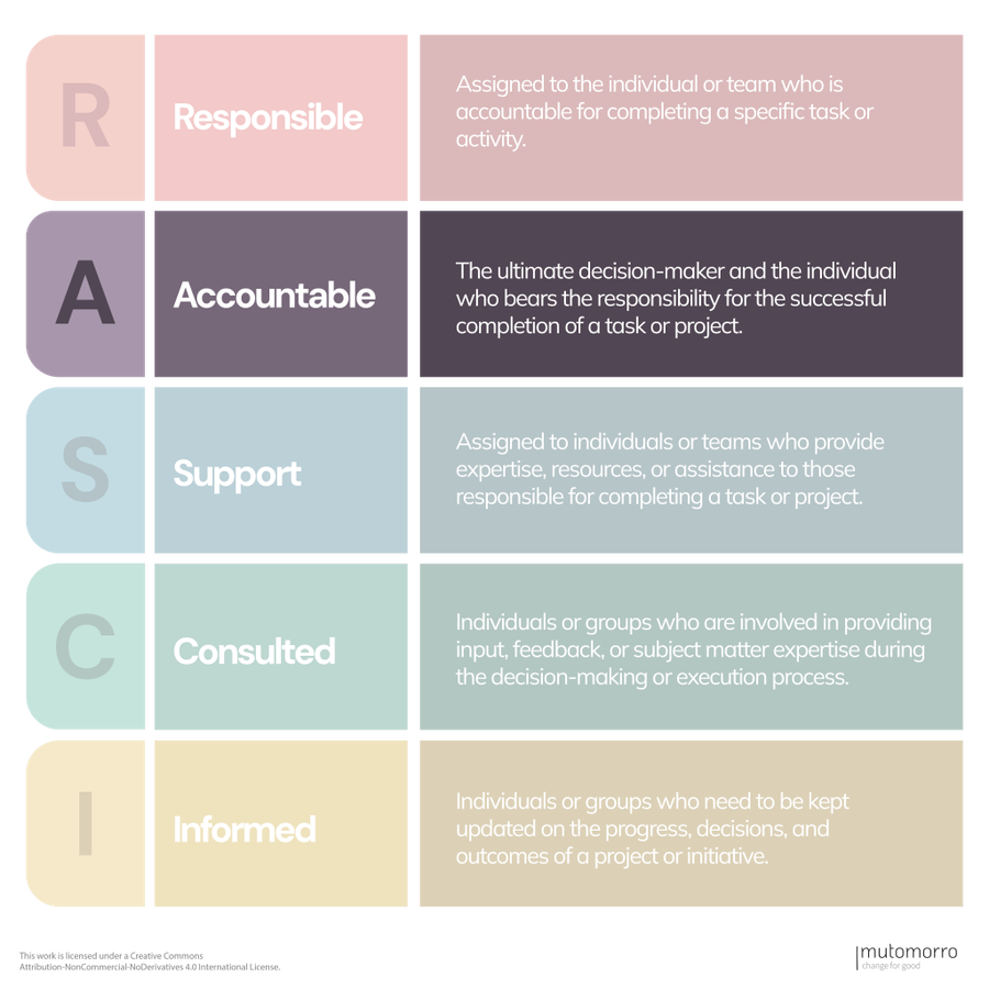 It's important to maintain open communication and collaboration between the "Responsible" and "Support" roles to ensure seamless execution and avoid any potential conflicts or misunderstandings.